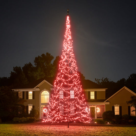 Este árbol de Navidad LED tiene una altura de 25 pies, está equipado con 1500 luces LED de bajo consumo y está especialmente diseñado para su mástil de bandera. Gracias a la innovadora colocación de las luces y al impresionante efecto de luz, se crea un hermoso árbol de Navidad alrededor de su mástil de bandera. Este árbol viene con luces LED rojas.