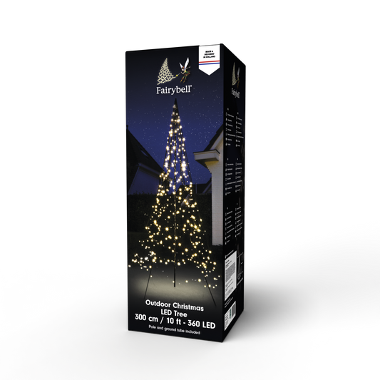 This LED Christmas tree has a height of 10ft, is equipped with 360 energy-efficient LED lights and comes with a matching flagpole. This Fairybell is therefore perfectly suited for the compact yard! Thanks to the innovative positioning of the lights and the warm white light, a beautiful Christmas tree is created around the flagpole.