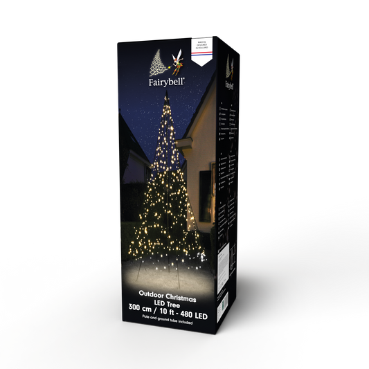 This LED Christmas tree has a height of 10ft, is equipped with 480 energy-efficient LED lights and comes with a matching flagpole. This Fairybell is therefore perfectly suited for the compact yard! Thanks to the innovative positioning of the lights and the warm white light, a beautiful Christmas tree is created around the flagpole.