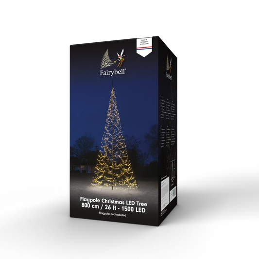 This LED Christmas tree has a height of 26ft, is equipped with 1,500 energy-efficient LED lights and is specially designed for your flagpole. Thanks to the innovative positioning of the lights and the impressive light effect, a beautiful Christmas tree is created around your flagpole. Do you prefer a colorful light effect? With the multicolor variant of Fairybell® you will steal the show, ensuring your family enjoys the coziest time of year!